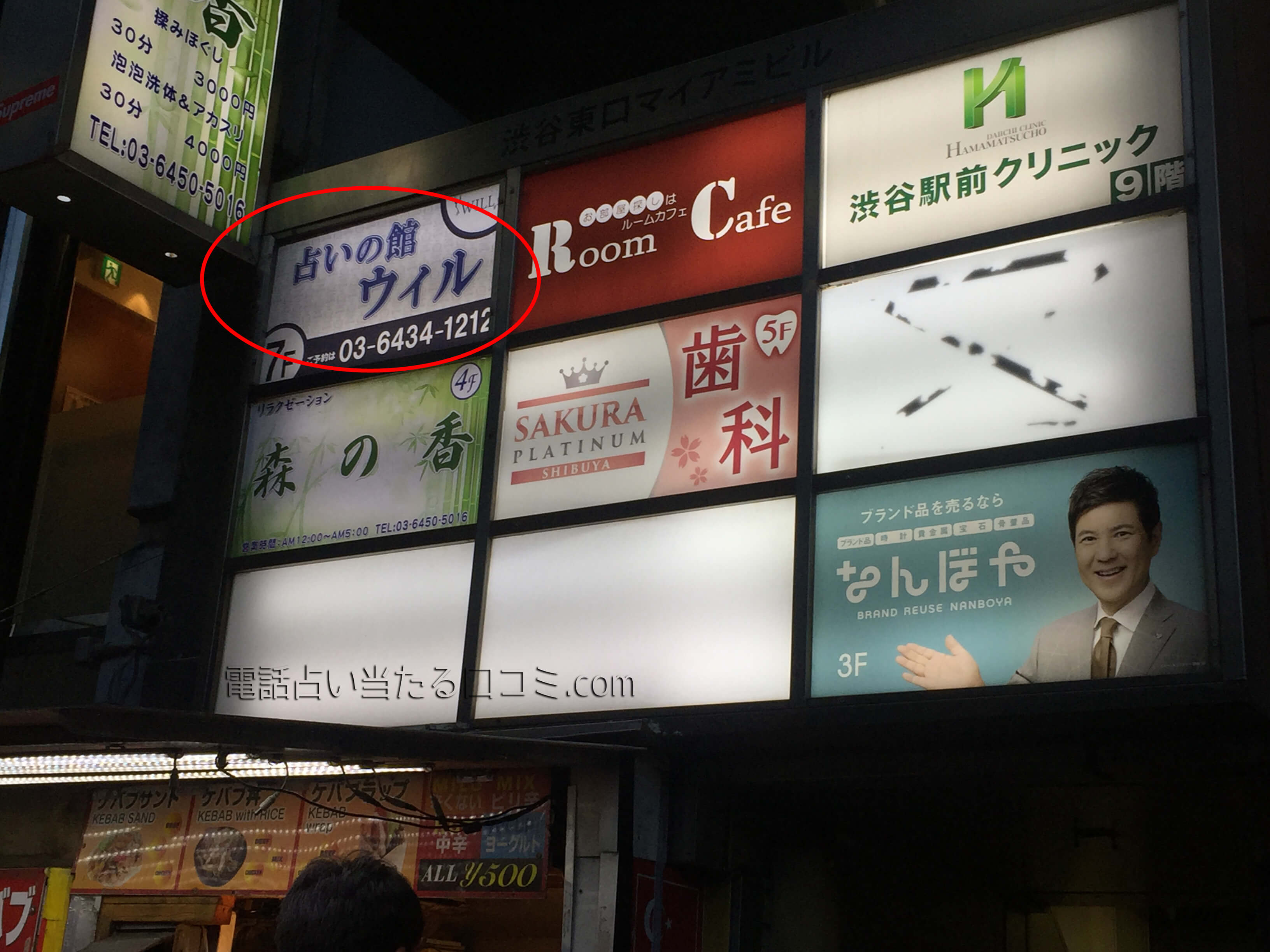 今回体験したのは、電話占いウィルの占い師さんも在籍している占いの館ウィル渋谷店。